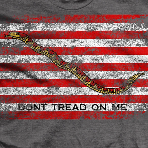 In the 1700s, the rattlesnake was a symbol of resistance to British oppression, because while it gives a fearsome strike, the rattlesnake always warns its would-be attacker in advance that it was willing to fight. In 1775, the Continental Army largely adopted the popular Gadsden Flag design of a coiled rattlesnake that is still famous today. The Continental Navy followed suit. However, in the Naval version, the rattlesnake is extended in the midst of striking. The First Union Jack or Navy Jack featured on this shirt has been changed many times over the years, but is still used by the U.S. Navy in its original form on special occasions and for certain ships bestowed with the honor. It remains a reminder that while we are a fair people who are not interested in engaging in conflict, we are not afraid of it either, and will fight with fervor to defend our rights and our way of life.
