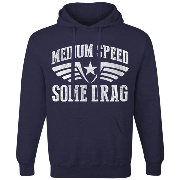 Our Medium Speed Some Drag design now on a pullover hoodie.