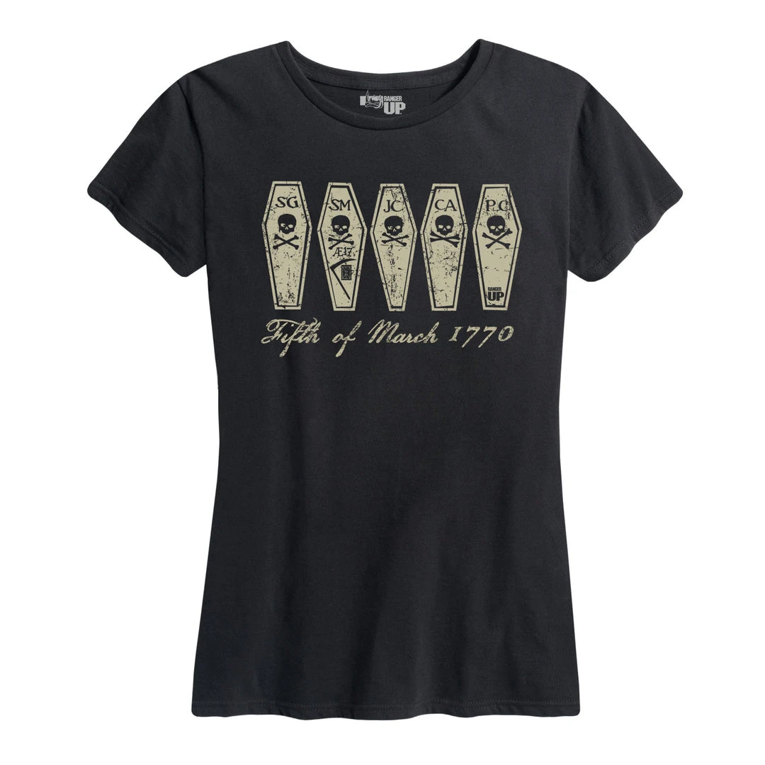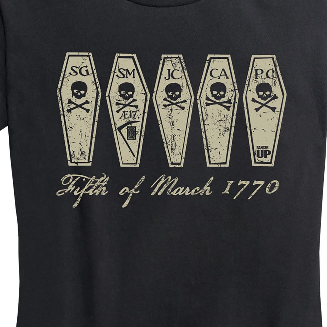 Each coffin represents a Patriot who was killed by the British at the Boston Massacre. Henry Knox, a 19-year bookseller, warmed the British Captain “If you fire, you must die for it.”